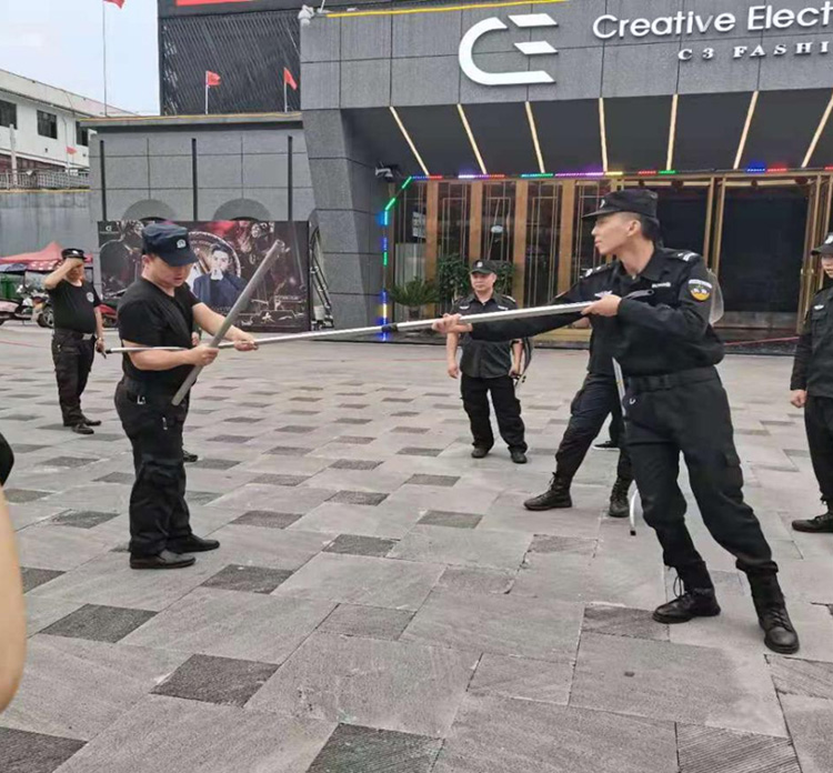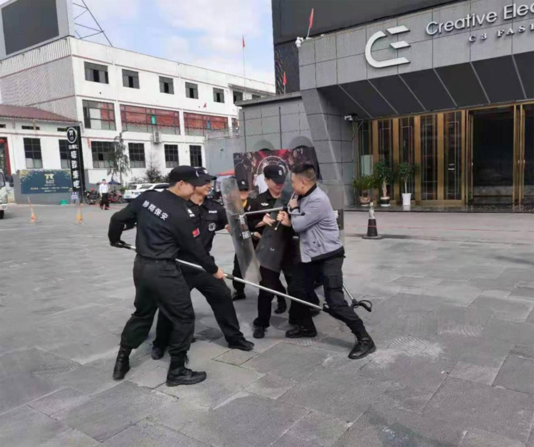 由保安隊長詳細講解防暴器械使用要領,認真進行動作示范,隊員逐一對照練習。主要包括鋼叉、盾牌、甩棍等的單獨使用,以及配合使用方法。通過有效利用防暴器械,達到抵御打擊匪徒、保護自身安全和維護客戶正常環(huán)境的目的。