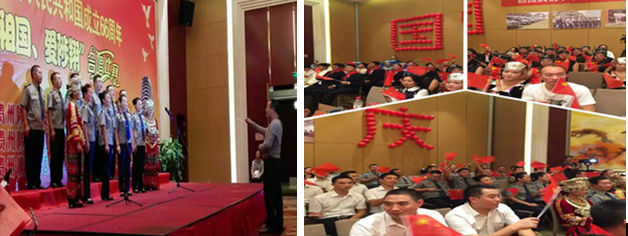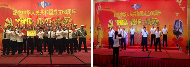 在圓滿完成“9.3”中國人民抗日戰(zhàn)爭暨世界反法西斯戰(zhàn)爭勝利70周年紀(jì)念活動期間各項工作之后,總公司上下繼而開展“9月質(zhì)量月”、中秋國慶“雙節(jié)”檢查慰問、“紅歌”合唱比賽等“三個活動”,提高企業(yè)服務(wù)質(zhì)量,凝聚員工士氣,宏揚(yáng)鎮(zhèn)東正能量、愛國熱忱和社會責(zé)任感,以實(shí)際行動向建國66周年獻(xiàn)禮!