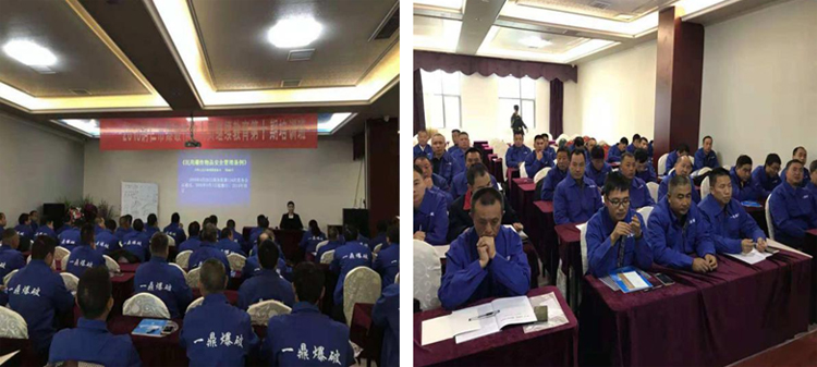 為進(jìn)一步提高爆破作業(yè)人員隊伍素質(zhì),強化安全生產(chǎn)、規(guī)范經(jīng)營,促進(jìn)爆破行業(yè)安全、健康、穩(wěn)定地發(fā)展。按照銅仁市公安局治安管理支隊的部署和指導(dǎo),根據(jù)國家有關(guān)爆破作業(yè)人員培訓(xùn)考核的有關(guān)規(guī)定,貴定眾強民爆安全技術(shù)職業(yè)培訓(xùn)學(xué)校于2018年10月18日至10月20日在銅仁市皇橋假日酒店舉辦了銅仁地區(qū)2018年第十期爆破三員復(fù)訓(xùn)班。受訓(xùn)單位共12家,其中爆破員56名,安全員30名,保管員14名。